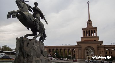 دسترسی به این تندیس معروف از طریق ایستگاه سانتوسی داوید امکان پذیر خواهد بود، مجسمه ای باشکوه که تصویر این قهرمان ملی را در حالی که بر پشت یک اسب سوار شده به نمایش می گذارد. می توان از این مجسمه به عنوان یکی از شاهکارهای شگرف، مجسمه ساز و نقاش معروق ارمنی، یرواند کوچار نام برد، مجسمه ای گچی که قدمتش به سال 1939 باز می گردد. این مجسمه با طول 3 متر با هدف نمایش صحنه ای دقیق از داستان های حماسی طراحی شده، تصویری که نمایانگر به خاک افتادن سربازان عرب در مقابل داوید قدرتمند است، داوید در این تصویر با صلابت و شکوهی باورنکردنی بر روی اسب افتاد. در سال 1941 در پی وارد شدن اتهامی به کوچار وی دستگیر شد و برای سه سال در زندان ماند. در راستای بروز این اتفاق و از دست رفتن اعتبار وی مجسمه کوچار ویران گردید. البته بعد از گذشت دو دهه از این اتفاق بار دیگر کوچار موفق به کسب فرصتی برای طراحی مجدد این مجسمه شد و در سال 1959 مجسمه باز دیگر در همان میدان البته این بار با ساختاری مسی به جایگاهش بازگشت. مجسمه جدید در مقایسه با نمونه گچی اش بسیار منحصربه فردتر و شگرف تر بود، این تندیس جدید تصویری از چهره مصمم داوید را به نمایش می گذارد، تصویری که به خوبی گویای روحیه و اهداف آزادی طلب این بزرگمرد و قهرمان تاریخ است. در دستان این مجسمه شمشیری یافت می شود، شمشیری که نشان از آمادگی مبارزه علیه متجاوزان دارد. این مجسمه بر روی یک پایه سنگی استوار گردیده، پایه ای سنگی که در حوضی پر آب قرار گرفته. در سال 1959 پس از رونمایی از این مجسمه تصویر آن به کارت پستال ها، بروشورهای راهنمای سفر و مجلاتی متعدد راه یافت. البته مجسمه ای دیگر از این اسطوره حماسی تاریخ در فرزنو کالیفرنیا یاد می شود. می توان از تندیس سانتوسی داوید به عنوان سمبلی از عشق و علاقه مردم ارمنستان به آزادی و استقلال نام برد، حسی دوست داشتنی که قرن ها از داشتنش محروم بودند.
