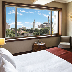 این اتاق ها با 32 مترمربع مساحت دارای چشم اندازی منحصربفرد رو به ایاصوفیه هستند که مروارید محله سلطان احمت بوده و از سال 1935 تبدیل به موزه شده است. این اتاق ها از وسیع ترین و جادارترین معیارها برای یک اتاق برخوردارند و دارای یک تخت خواب دو نفره هستند.