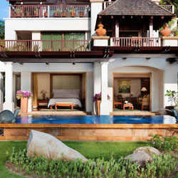 اطلاعات بیشتر >>این سوئیت های 250 متر مربعی بسیار لوکس و به صورت دو خوابه طراحی شده اند و با ارائه امکاناتی منحصر به فرد مانند استخر اختصاصی، جکوزی اختصاصی در پاسیو و فضای روباز بسیار پهناور از شما پذیرایی می کنند. این سوئیت ها دارای یک اتاق خواب با تخت خواب کینگ (دو نفره بزرگ)، یک اتاق خواب با تخت خواب دو نفره، فضای مخصوص غذا خوری، کمد با قابلیت ورود در آن، دو حمام، چهار حوله لباسی، میز و صندلی چهار نفره، فضای نشیمن، پنجره های تمام قدی، سقف های بلند، دو تلویزیون، دو خط تلفن و سه گوشی تلفن هستند و برای اقامت چهار میهمان بزرگسال و دو کودک همراهشان مناسبند. حداکثر تعداد تخت خواب اضافی و تخت خواب کودک در این سوئیت ها یک تخت است. لطفاً توجه داشته باشید این سوئیت ها با ارائه امکاناتی مانند دوش های جدا شونده در حمام برای اقامت افراد معلول مناسب هستند. این سوئیت ها با فضای روباز 87 متر مربعی، فضای سرپوشیده 145 متر مربعی و جکوزی 18 متر مربعی از شما برای تجربه لحظاتی آرامش بخش و اقامتی دلنشین در جزیره زیبای پوکت دعوت می کند. از دیگر امکانات این سوئیت ها می توان به آشپزخانه بسیار مجهز این اتاق همراه با یخچال کوچک و ظروف نقره اشاره کرد.
